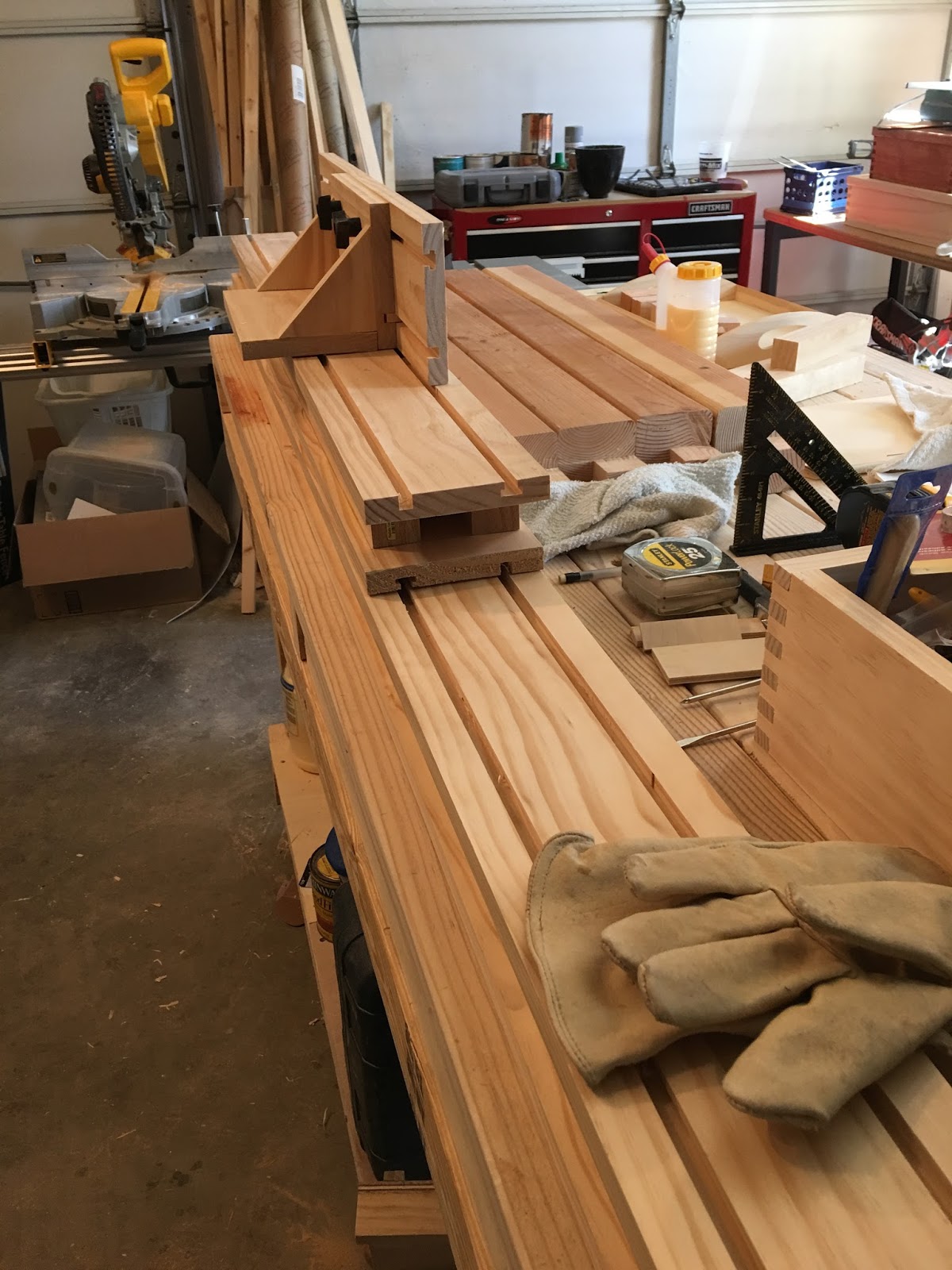 All four legs are cut and match in length. One of the benefits of cutting cedar is that my workshop (ok, garage) smells nice.